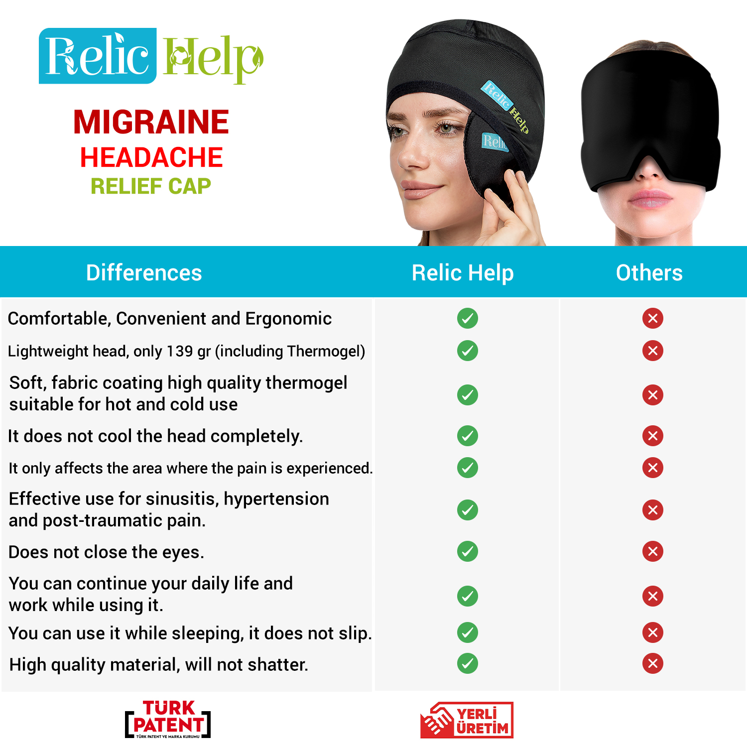 - Relic Help provides a comfortable experience with its headache-relieving headband. This product is effective not only for migraines but also for similar pains such as sinusitis, tension headaches, and post-traumatic headaches.