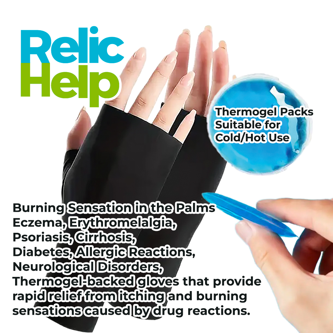 Relic Help Thermal Gloves are specially designed thermo-gel supported medical gloves developed for individuals experiencing burning, itching, and sensitivity in the palms. They help relieve discomfort caused by eczema, erythromelalgia, psoriasis, diabetes, cirrhosis, allergic reactions, neurological disorders, and medication-related side effects, including burning and itching sensations.